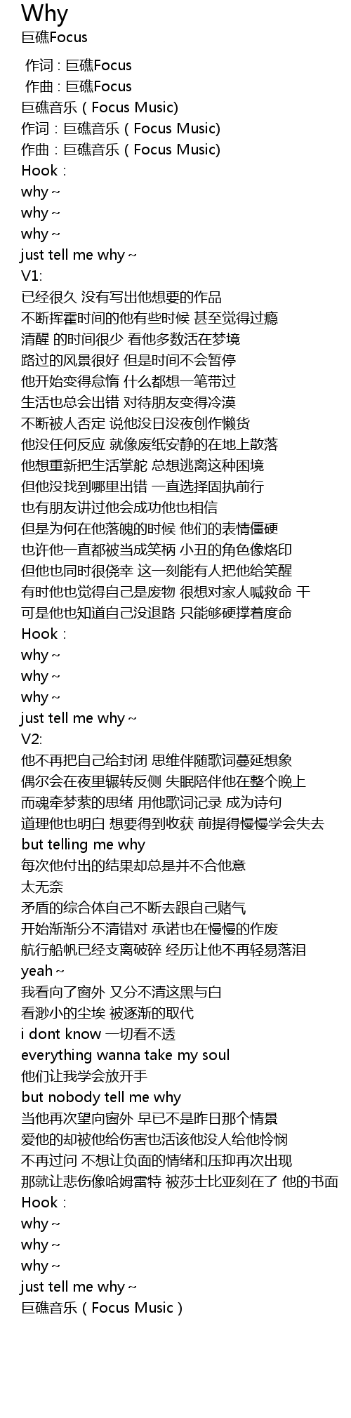 | [00:01.000] | 作曲 : 巨礁Focus |