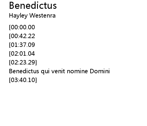 | [00:49.11][00:00.00] | Benedictus qui venit nomine Domini |