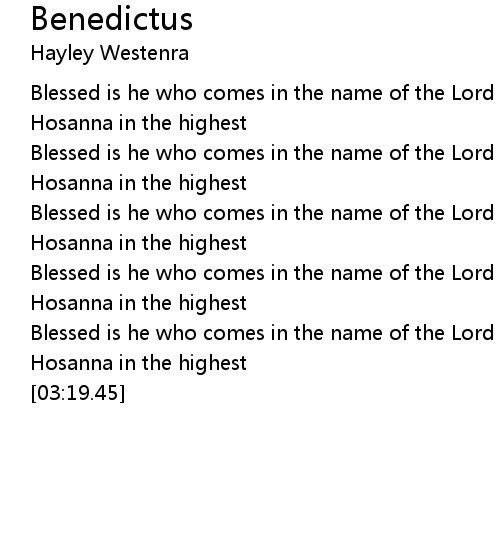 | [01:53.39] | Blessed is he who comes in the name of the Lord |