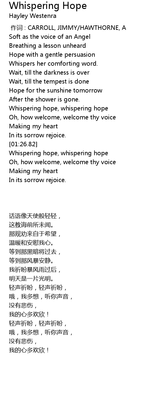 | [01:36.61] | Oh, how welcome, welcome thy voice |