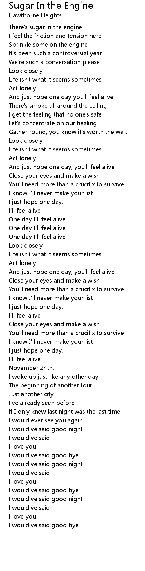 Sugar In the Engine 歌词