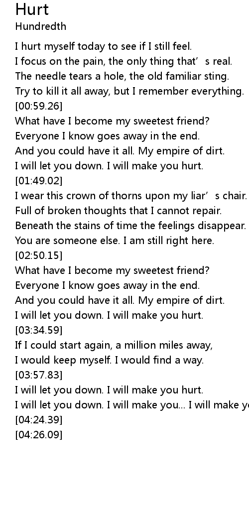 | [03:59.17] | I will let you down. I will make you hurt. |