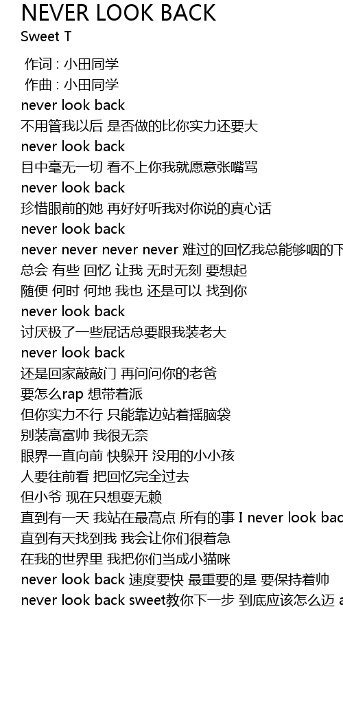 | [01:20.145] | never look back sweet教你下一步 到底应该怎么迈 ai~ |