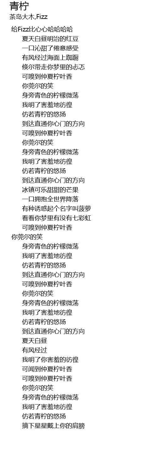 | [00:45.56] | 可嗅到仲夏柠叶香 |