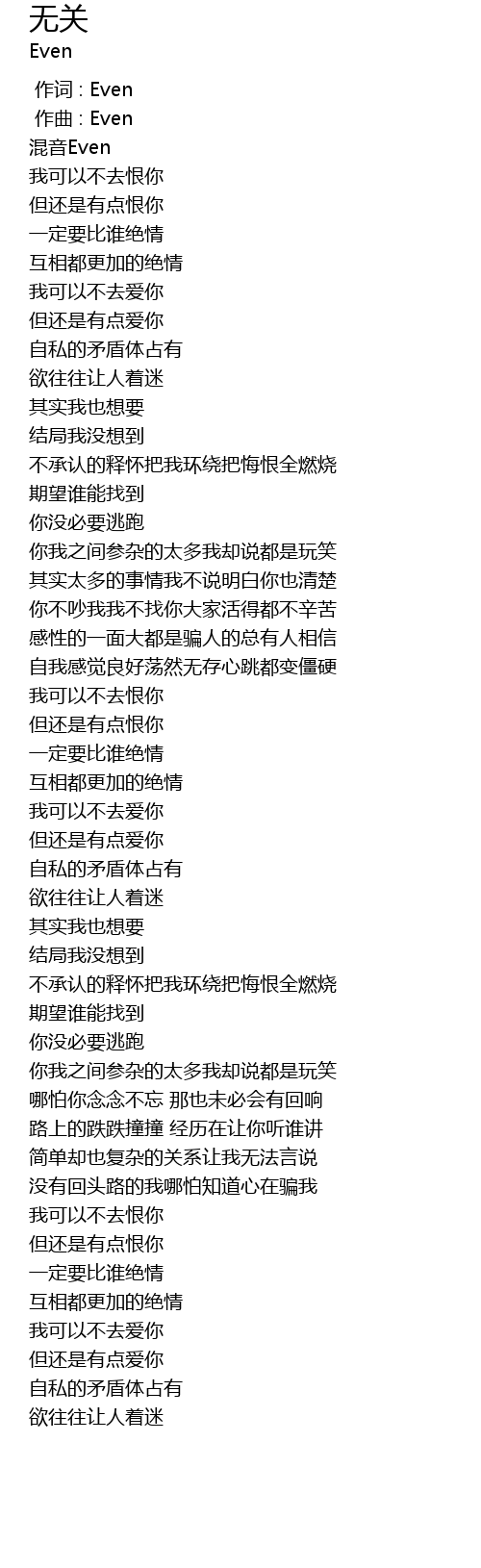 | [00:00.000] | 作词 : Even |