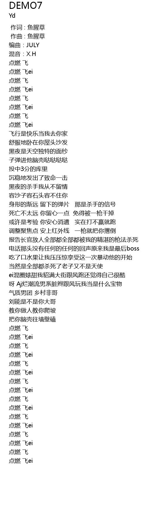 | [00:06.918] | 点燃 飞ei |