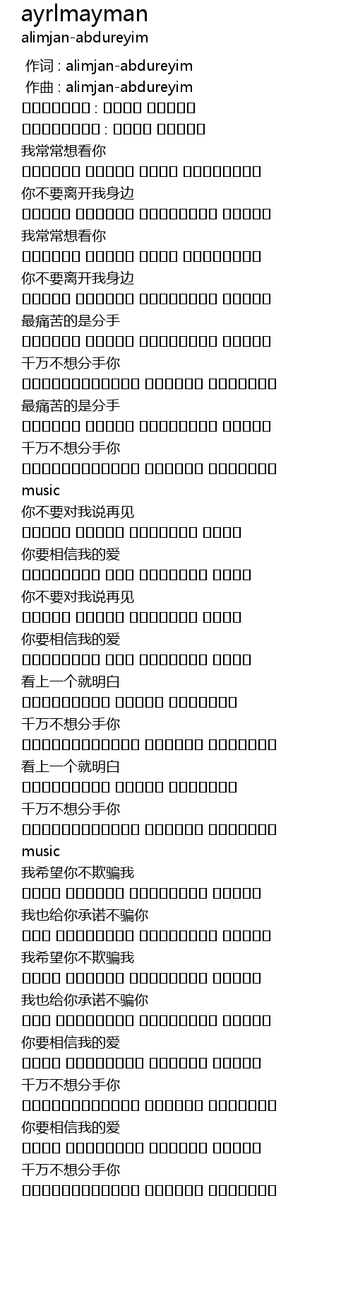 | [00:00.000] | 作词 : alimjan-abdureyim |