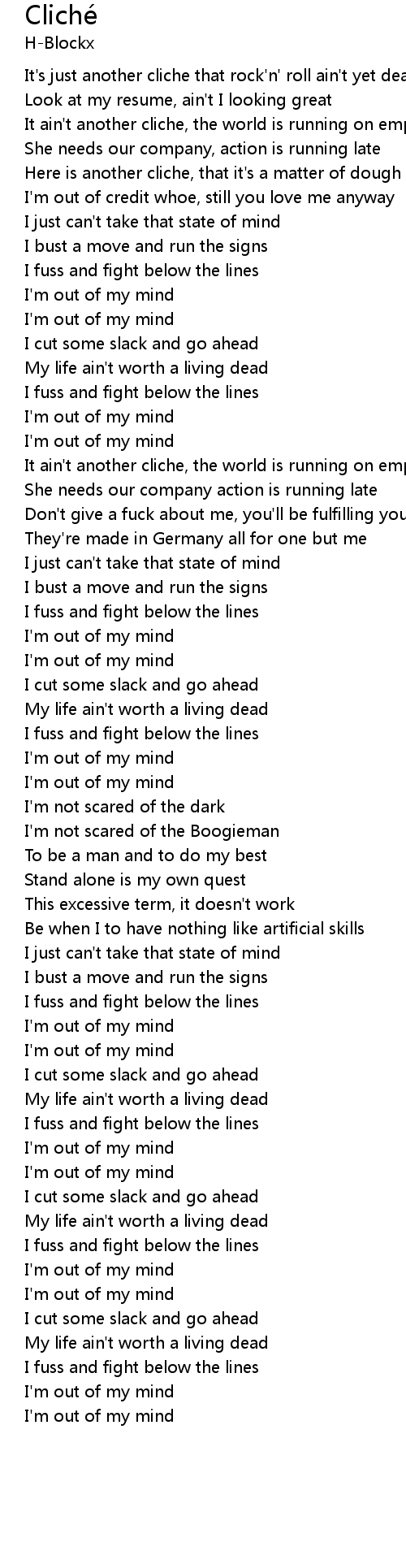Don't give a fuck about me, you'll be fulfilling your cliches |