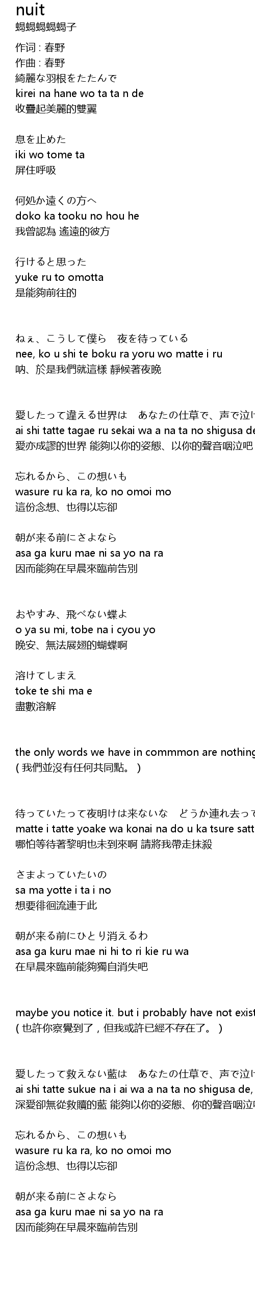 | nee, ko u shi te boku ra yoru wo matte i ru | |