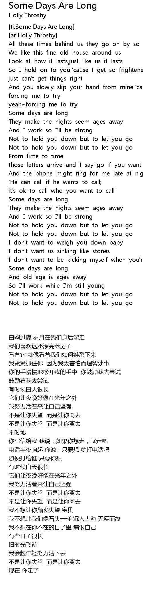 [ti:Some Days Are Long] |