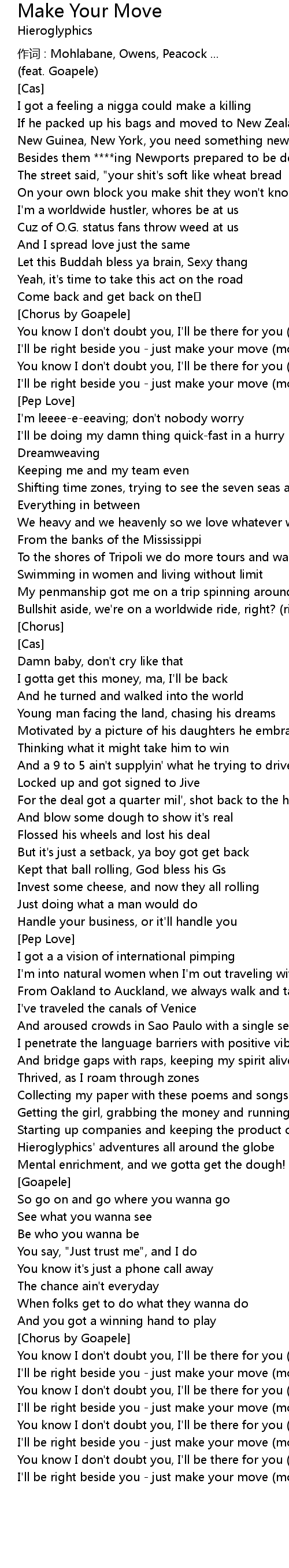 | You know I don' t doubt you, I' ll be there for you just make your move | |
