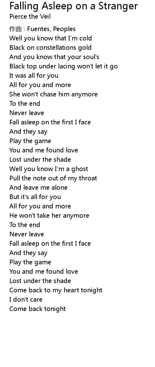 | 歌曲 | Falling Asleep on a Stranger |