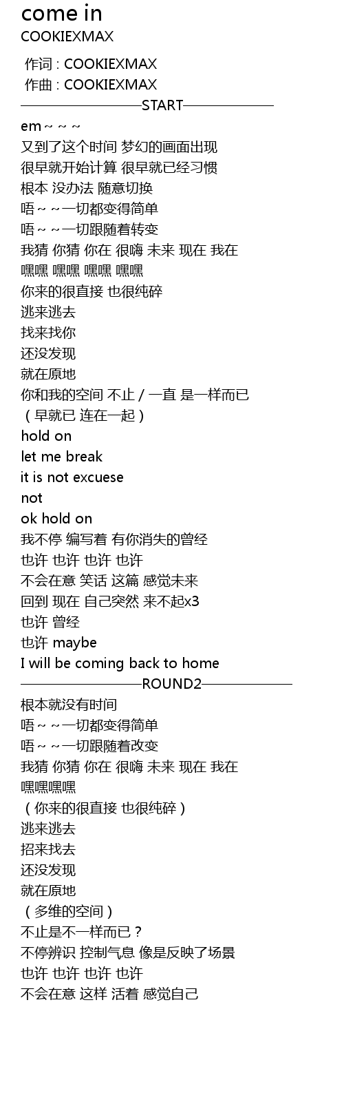 | [00:00.000] | 作词 : COOKIEXMAX |
