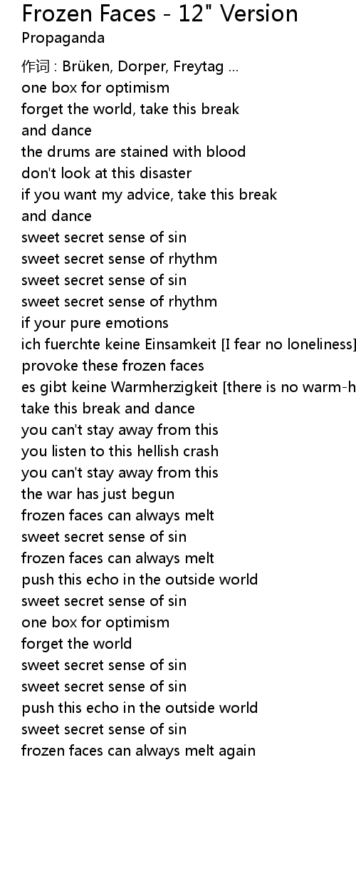 | 歌曲 | Frozen Faces - 12" Version |