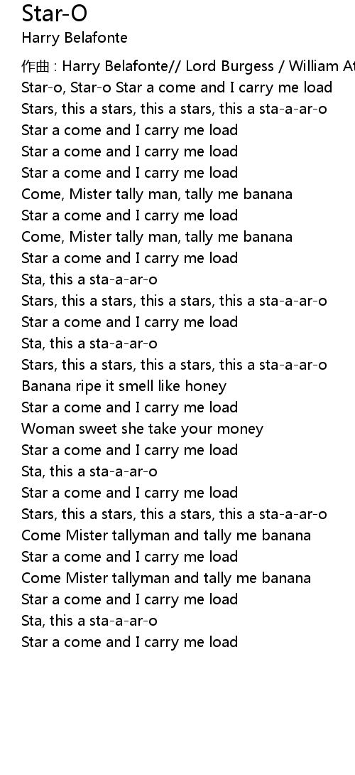 | zuò qǔ : Harry Belafonte Lord Burgess William Attaway William Attaway | |
