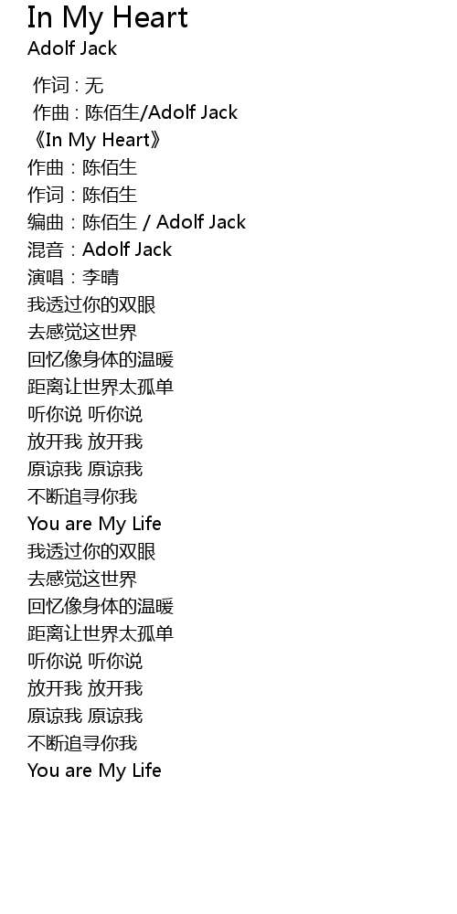 | [00:01.000] | zuo qu : chen bai sheng Adolf Jack |