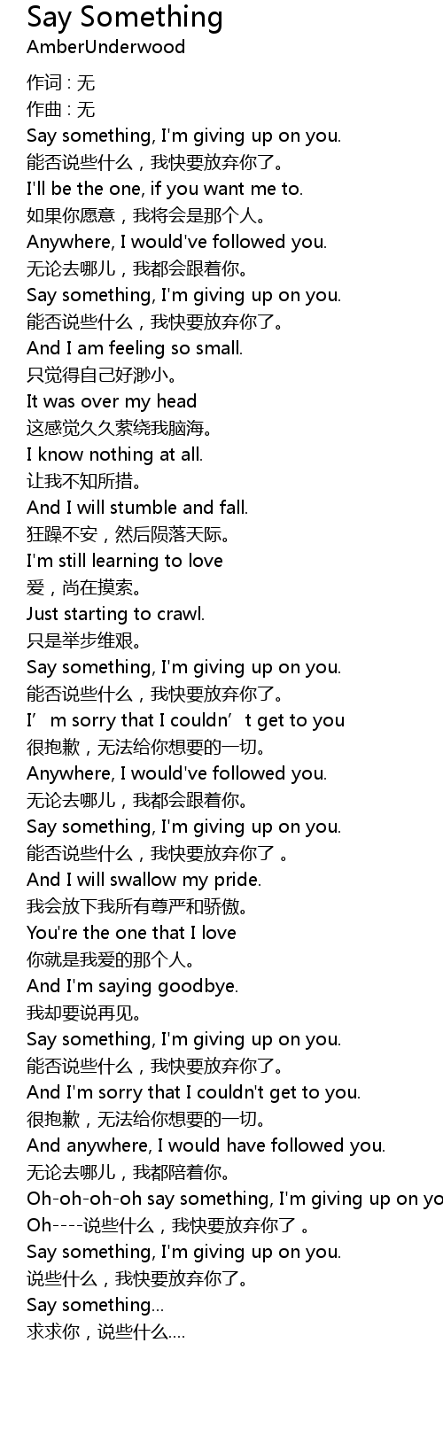 | Ohohohoh say something, I' m giving up on you. | |