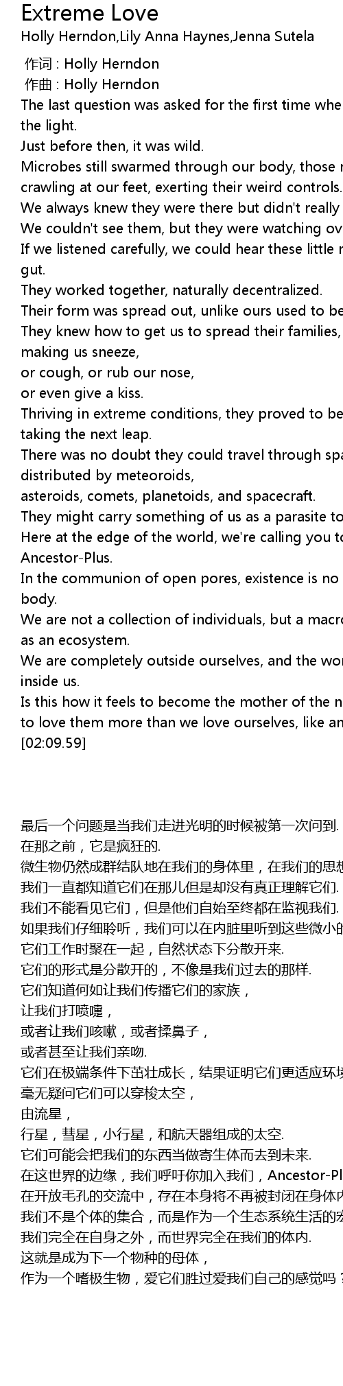| [02:03.58] | to love them more than we love ourselves, like an extremophile? |