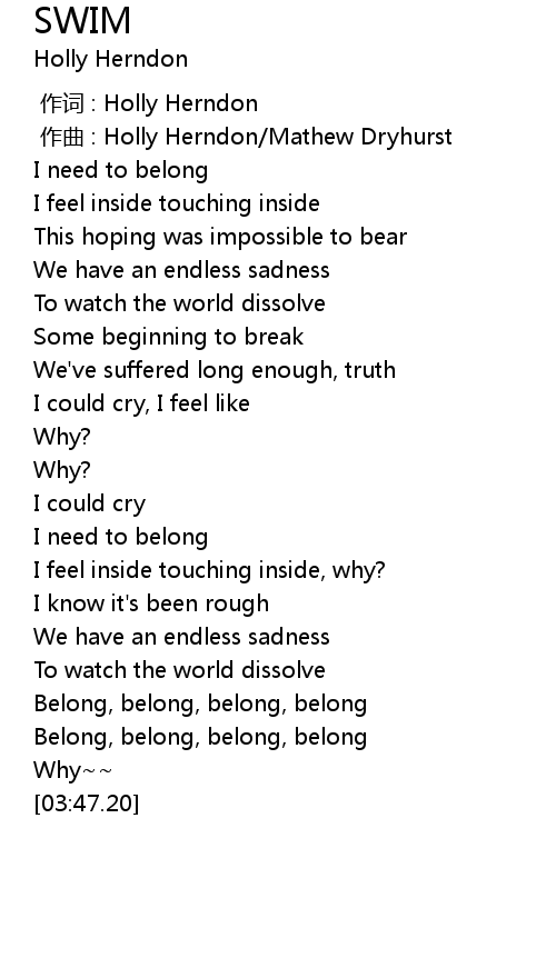| [00:13.85] | I need to belong |