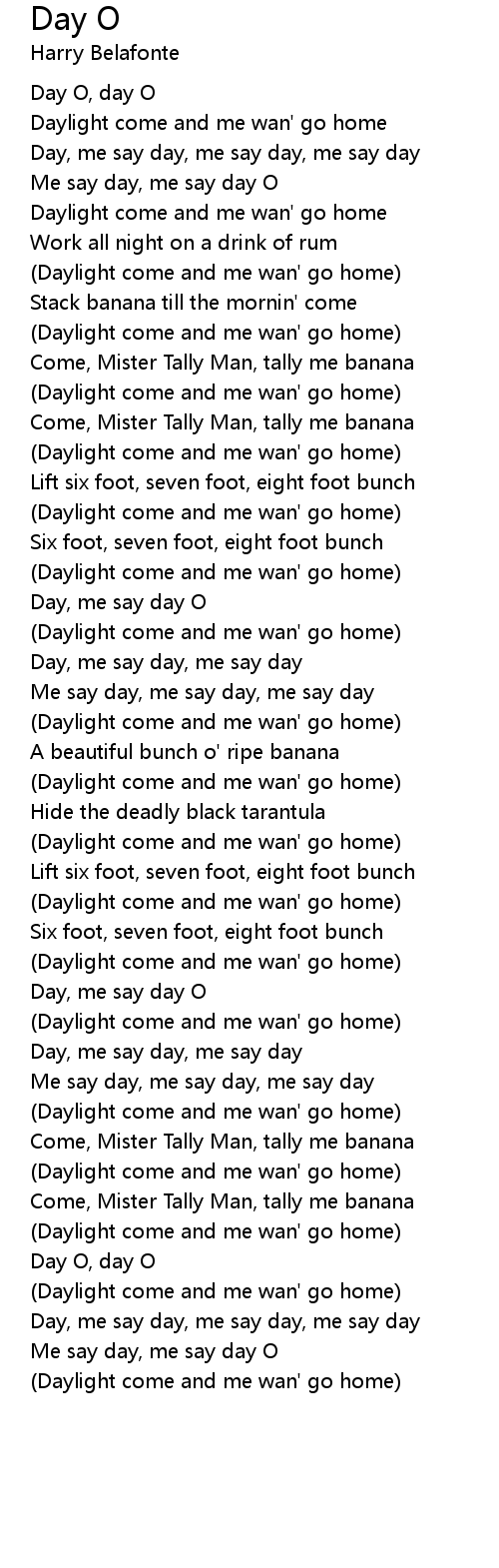 Daylight come and me wan' go home |