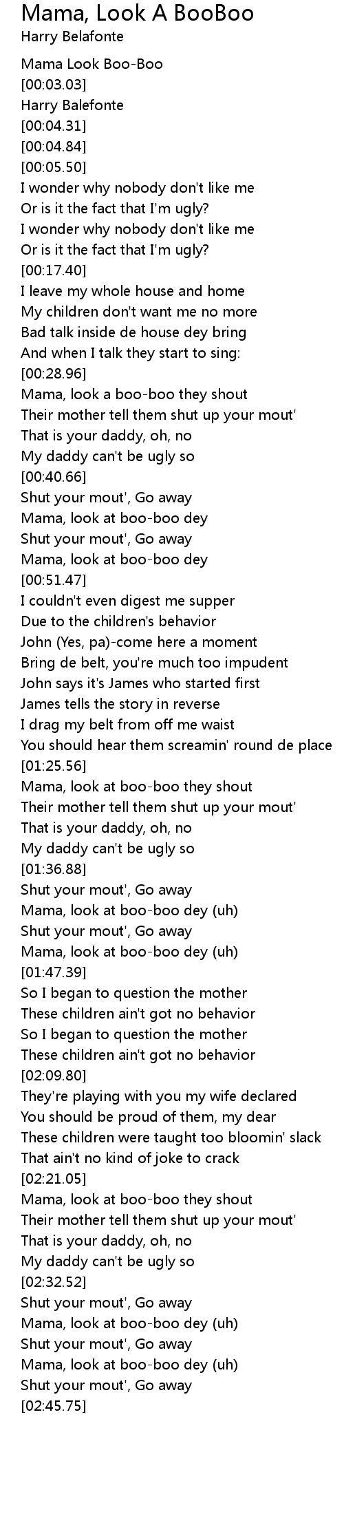 Mama, look a boo-boo they shout |