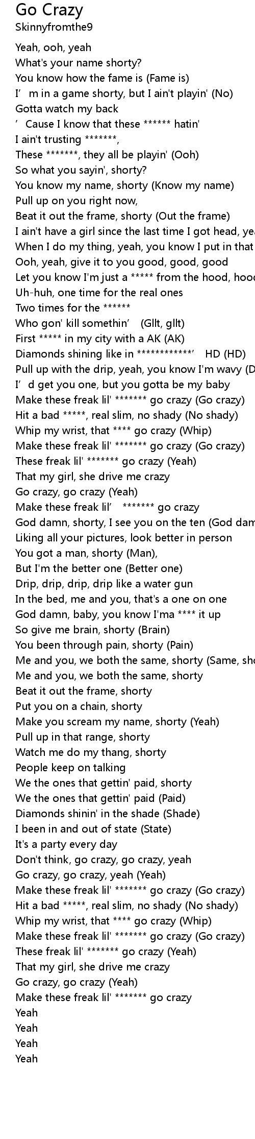 | [00:54.75] | Make these freak lil' ******* go crazy (Go crazy) |