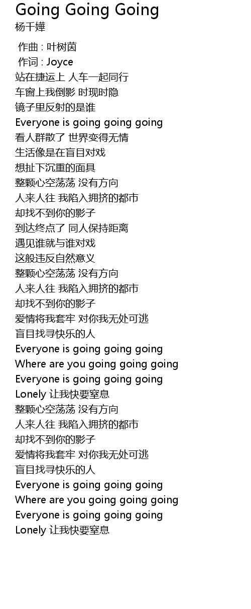 | [00:38.62] | kàn rén qún sàn le shì jiè biàn de wú qíng |