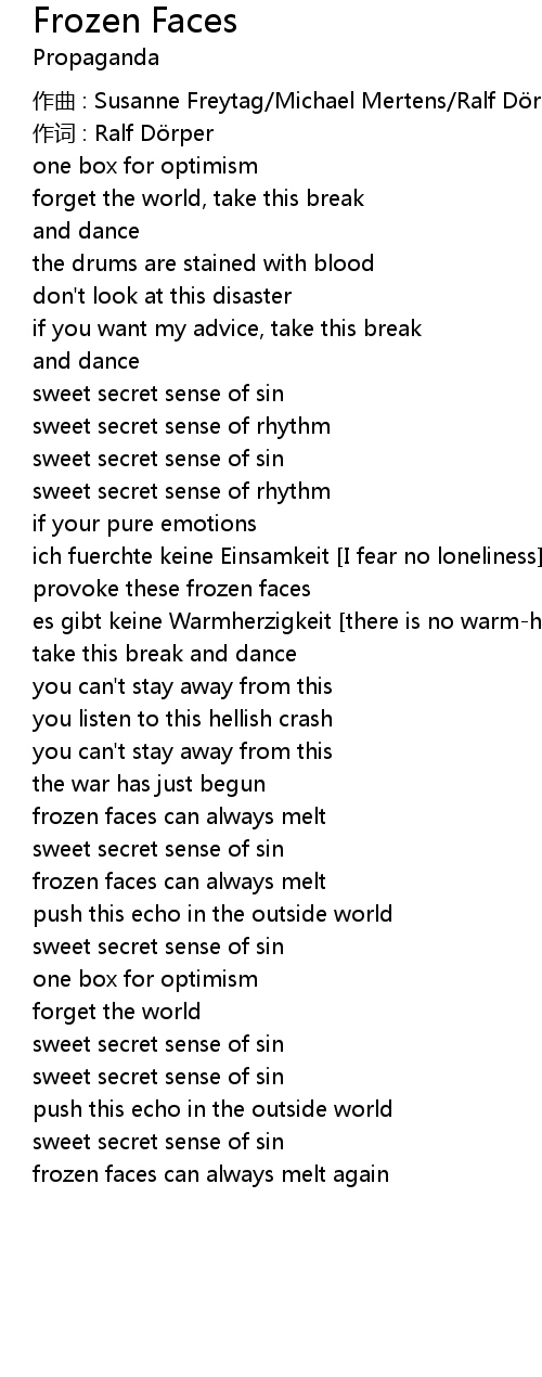 | 歌曲 | Frozen Faces |