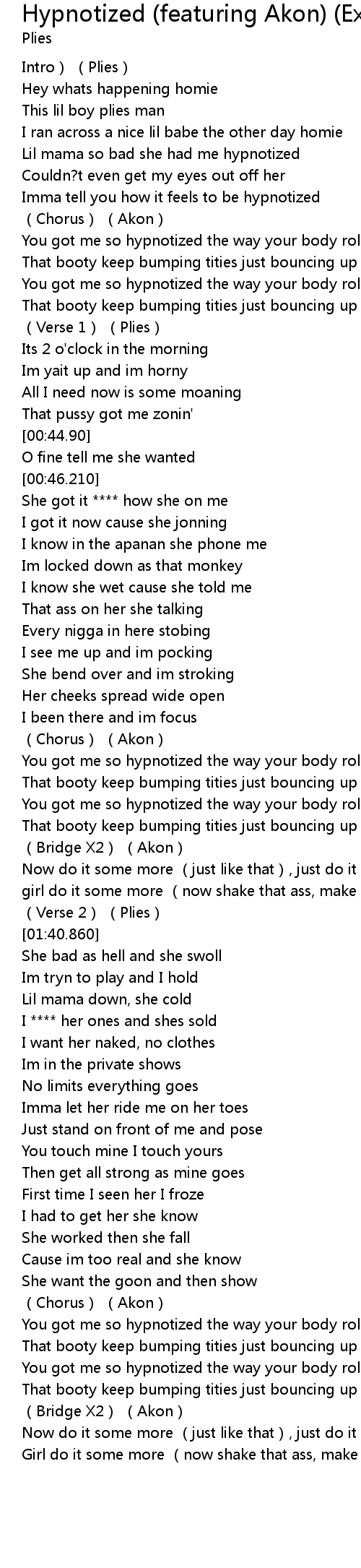 | 歌曲 | Hypnotized (featuring Akon) (Explicit Album Version) |