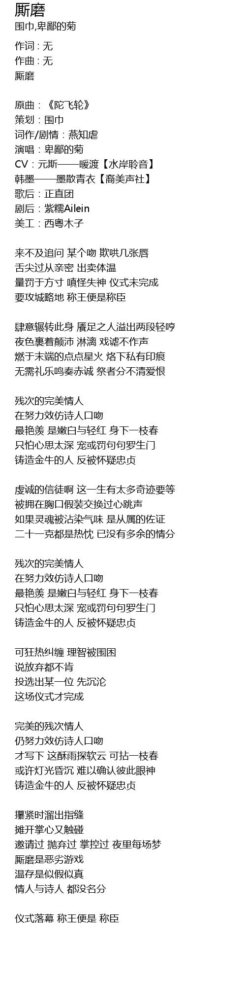 | 词作/剧情:燕知虐 | |