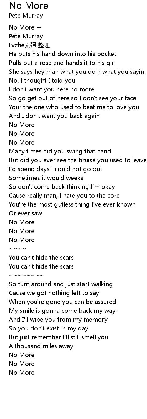| [01:03.99] | But did you ever see the bruise you used to leave |