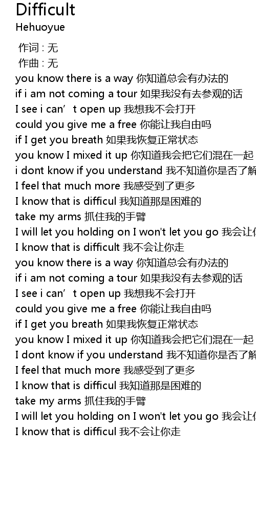 | [01:55.310] | I know that is difficul wǒ zhī dào nà shi kùn nán de |