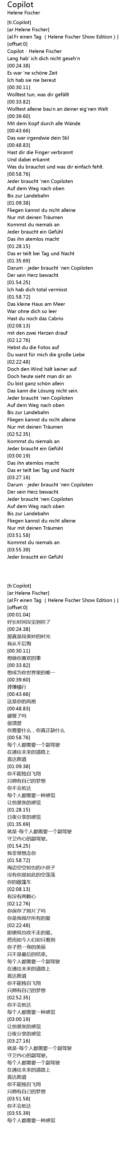 | [03:28.73] | Darum jeder braucht ' nen Copiloten |