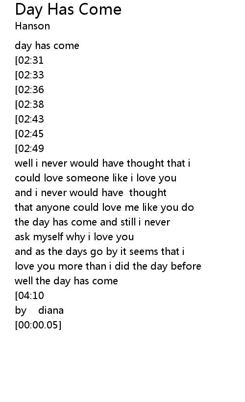 the day has come and still i never |