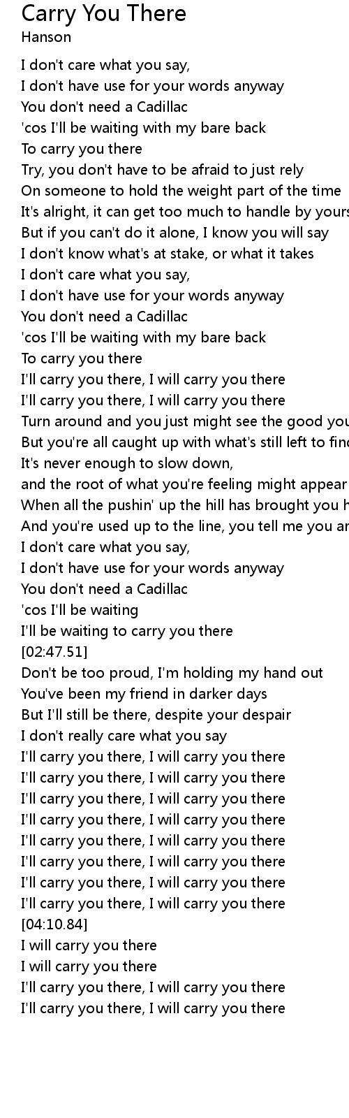 I'll carry you there, I will carry you there |