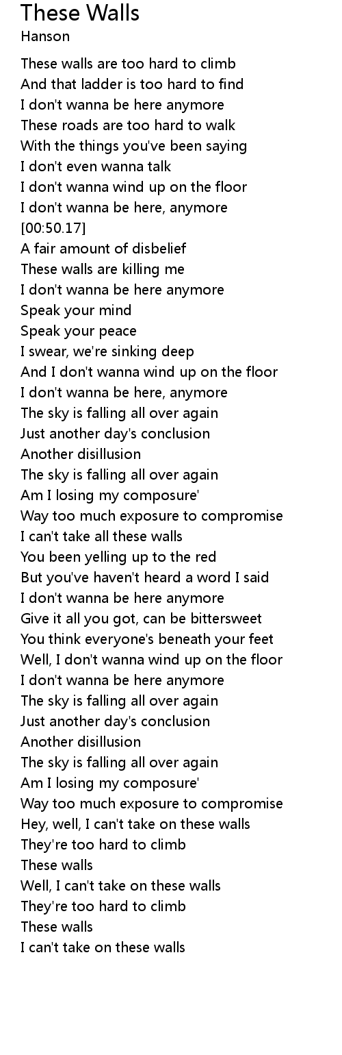 I can't take on these walls |