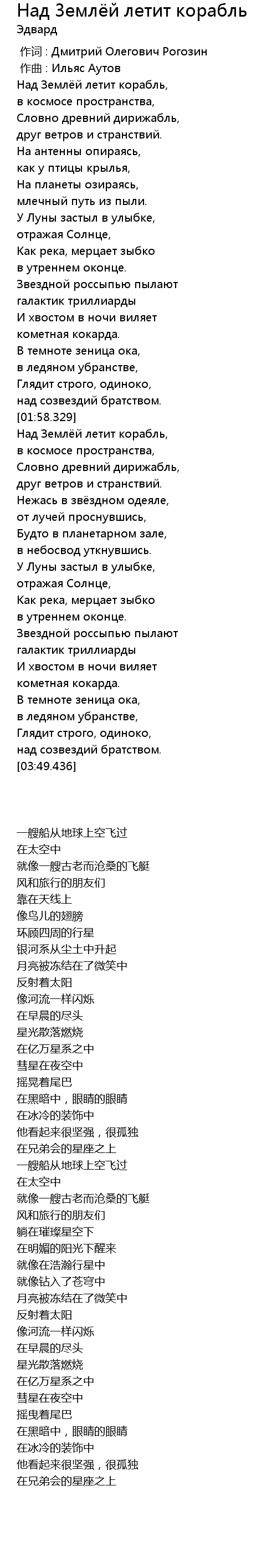 | 歌曲 | Над Землёй летит корабль |