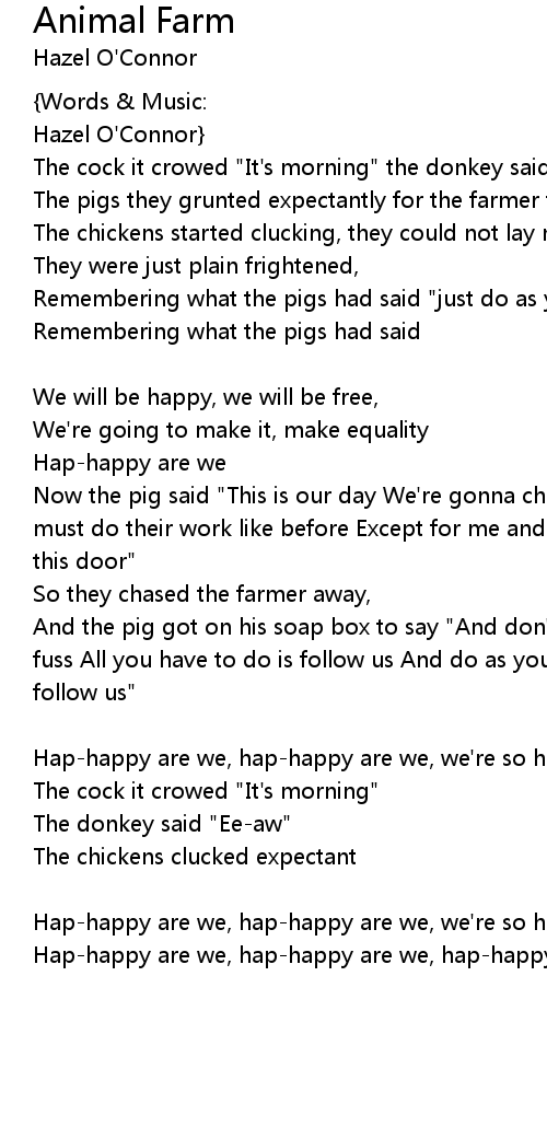 Now the pig said "This is our day We're gonna chase the farmer away Now everyone must do their work like before Except for me and I must think for you behind this door" |