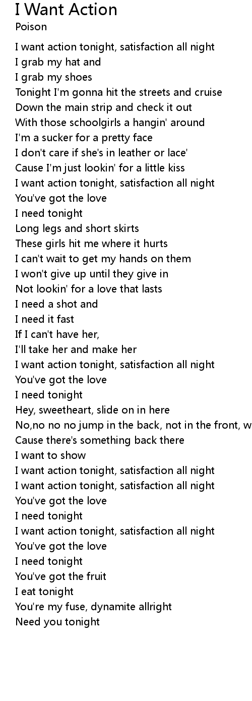 I want action tonight, satisfaction all night |