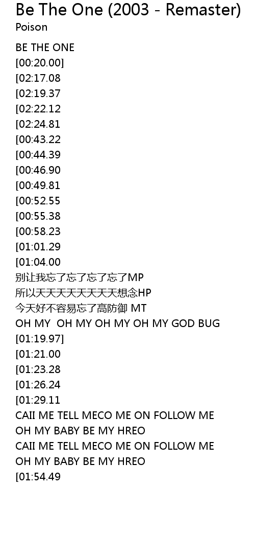 | [01:40.10][01:29.11] | TO BE THE ONE |