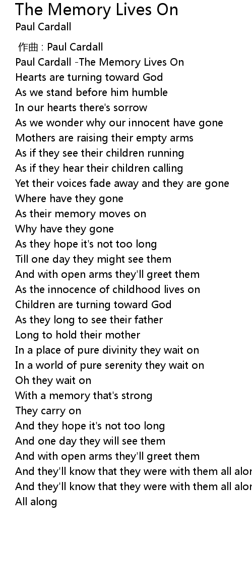 | 歌曲 | The Memory Lives On |