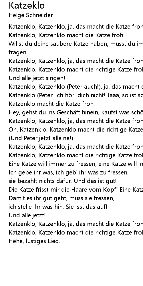 | Oh, Katzenklo, Katzenklo macht die richtige Katze froh. | |