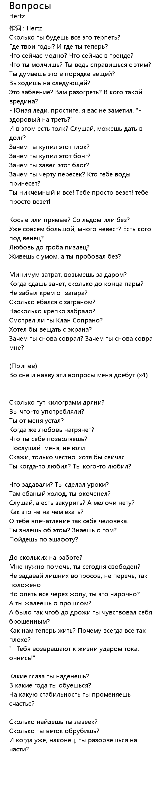 Вопросы 歌词