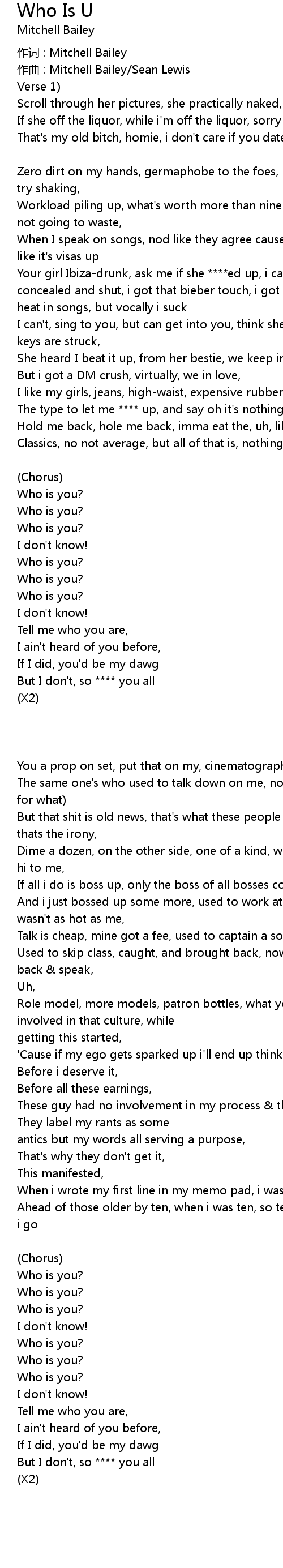 | 歌曲 | Who Is U |