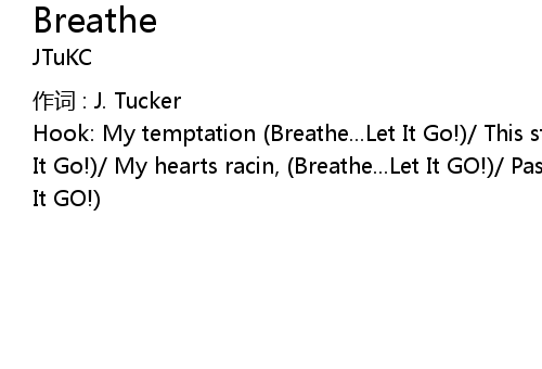 | Hook: My temptation (Breathe...Let It Go!)/ This stress face it (Breathe...Let It Go!)/ My hearts racin, (Breathe...Let It GO!)/ Past retracin' (Breathe...Let It GO!) |