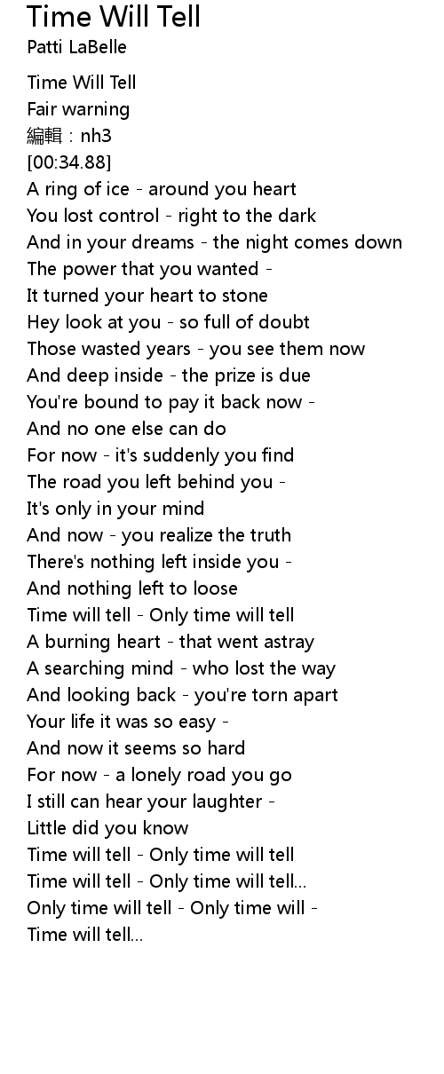 | [00:03.83] | Time Will Tell |
