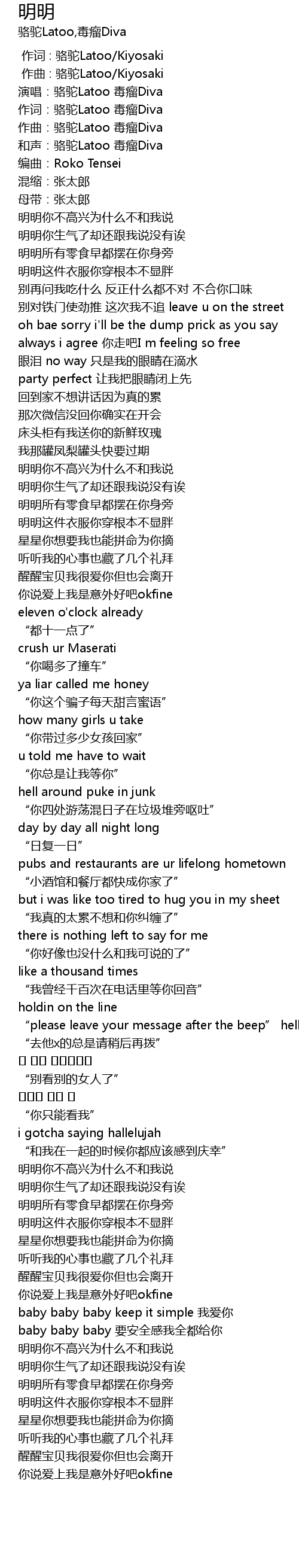 | [00:03.137] | 作词:骆驼Latoo 毒瘤Diva |