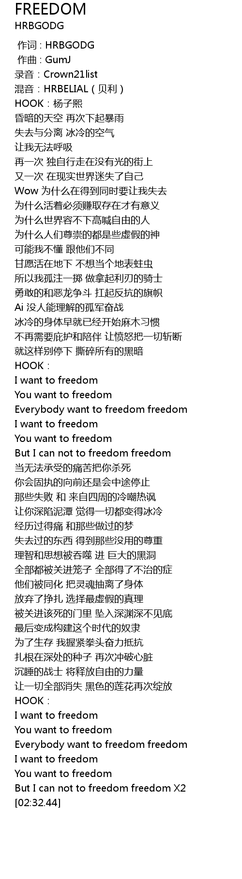 | [02:28.12] | But I can not to freedom freedom X2 |