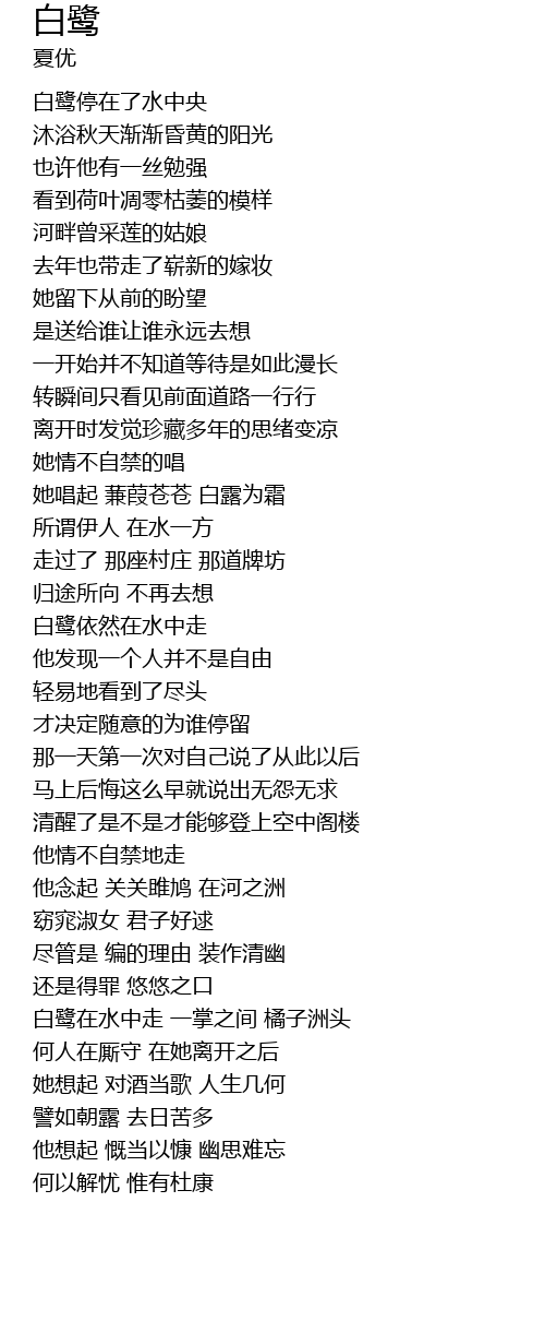| bái lù tíng zài le shuǐ zhōng yāng | |
