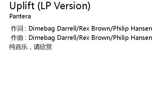| [00:01.000] | 作曲 : Dimebag Darrell/Rex Brown/Philip Hansen Anselmo/Vinnie Paul |
